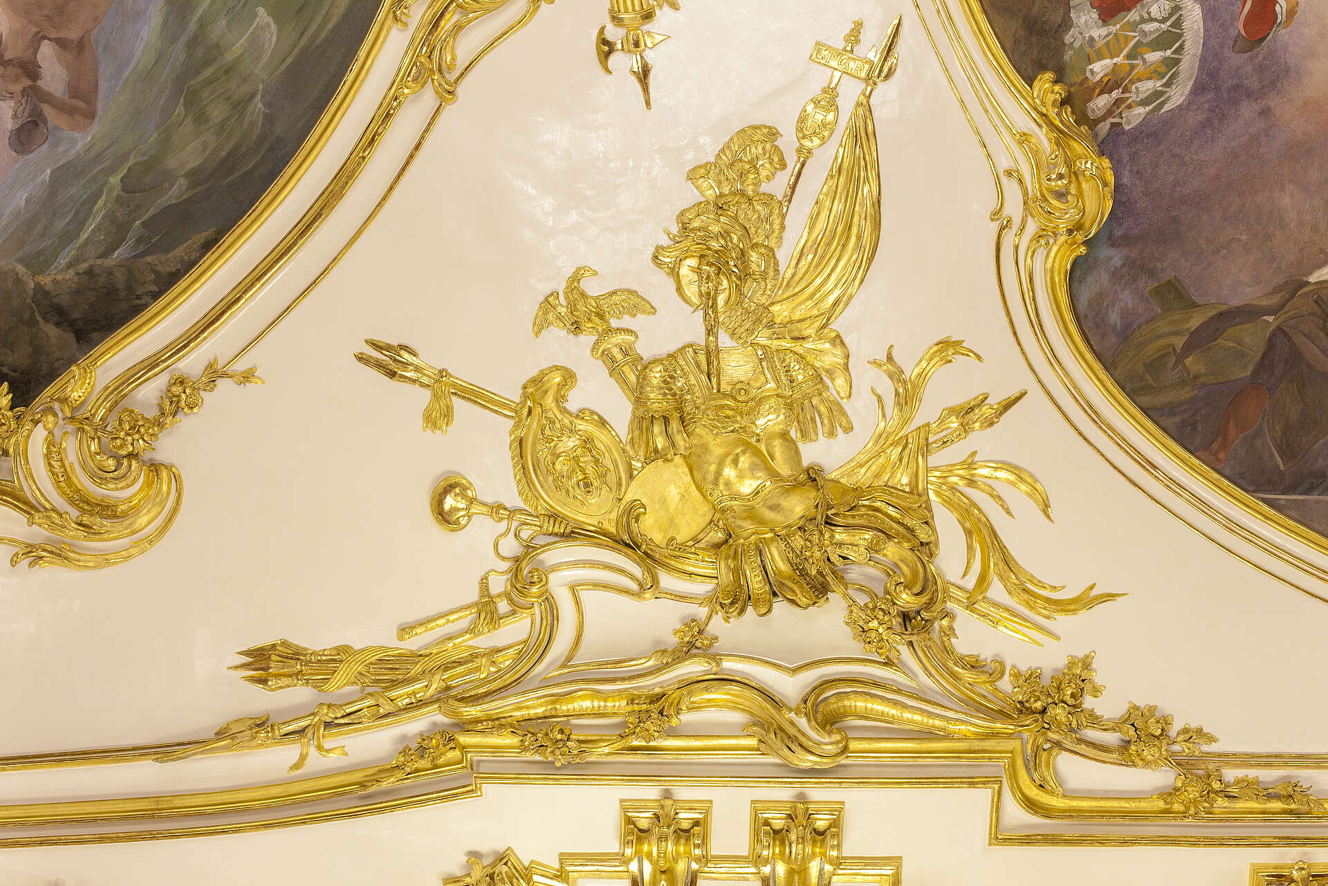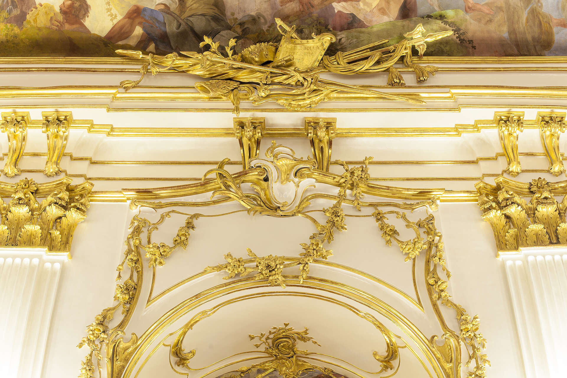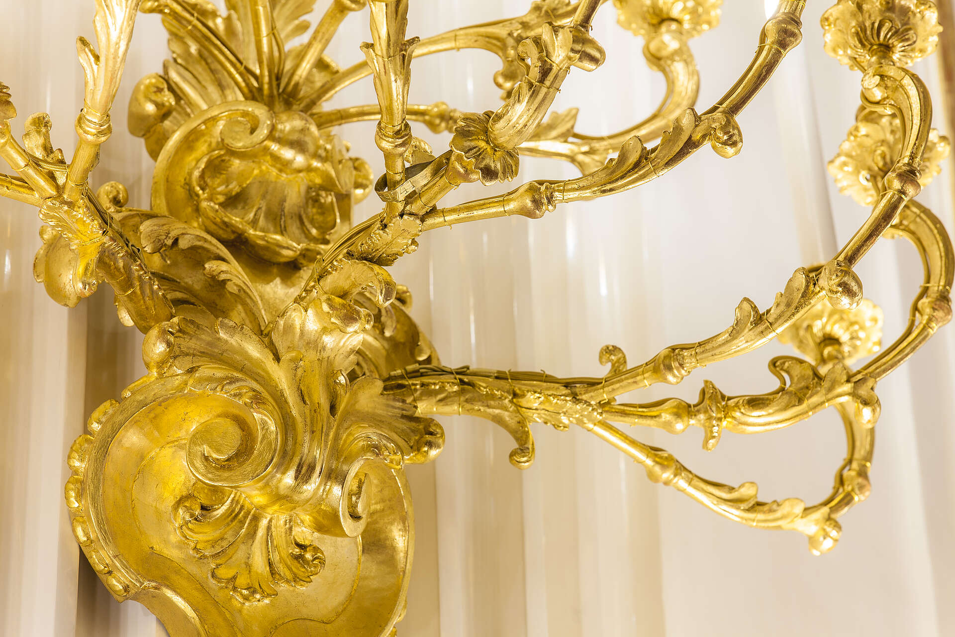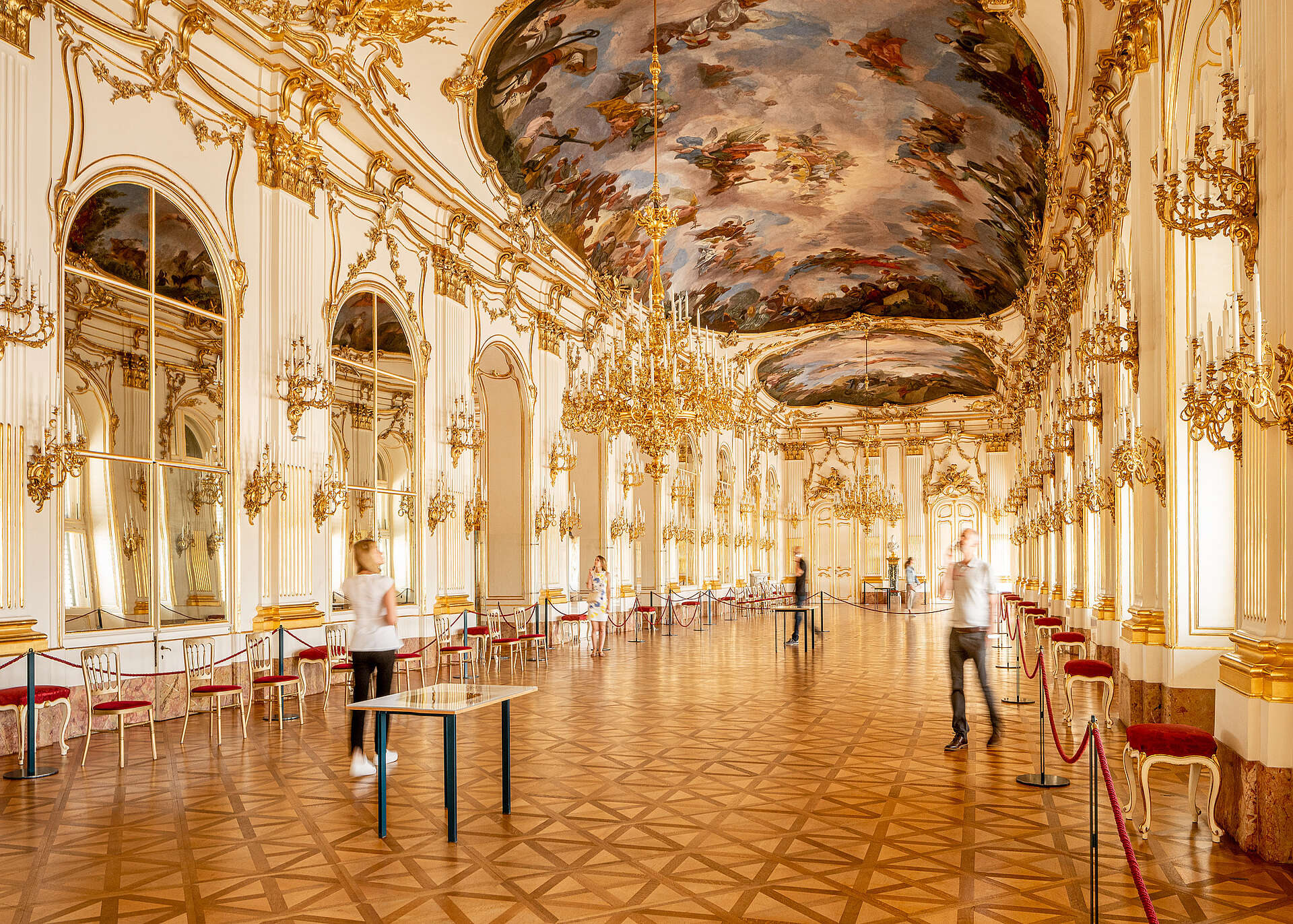 Mit einer Länge von 43 Metern und einer Breite von fast zehn Metern bildete die Große Galerie den idealen Rahmen für höfische Veranstaltungen. Die prächtige Ausgestaltung mit ihren vergoldeten Stuckdekorationen und Deckenfresken stellt ein Gesamtkunstwerk des Rokokos dar.
